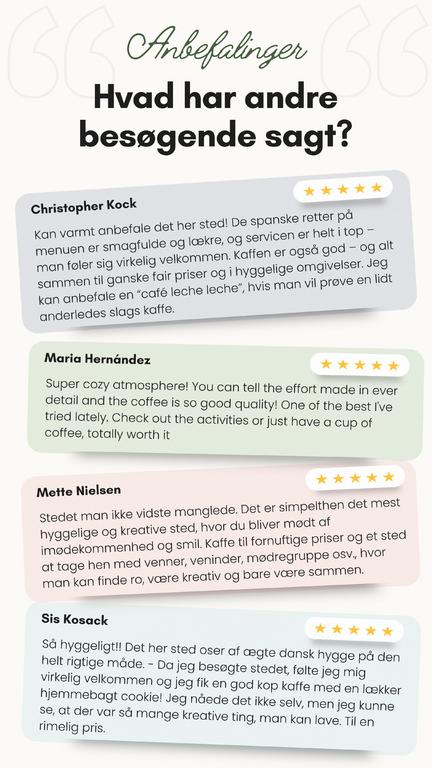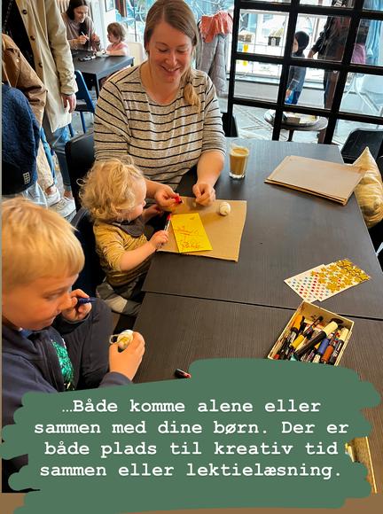 Der er plads til fordybelse alene eller sammen med andre, du kan komme med dine egne kreative projekter eller blot nyde bæredygtig kaffe, hjemmebag eller dagens tapastallerken i caféen.