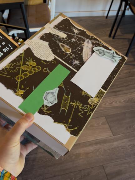 Collage: Vi har en stor reol fyldt med bøger og ugeblade, lige til at klippe i. Du kan derfor også lave collage i forskellige størrelser og vi sælger også færdiglavede "collage-kits" lige til at gå til.